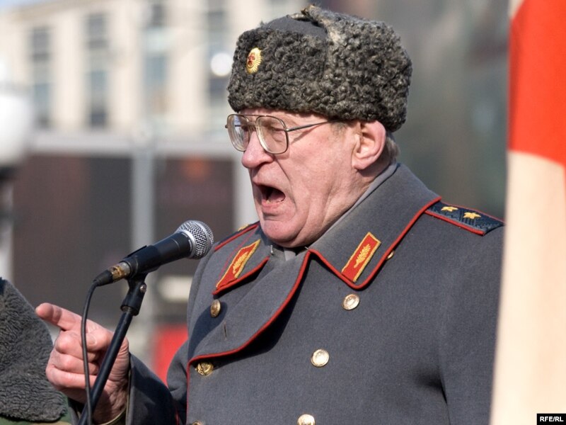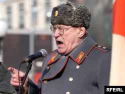 Митинг "Союза советских офицеров", приуроченный к празднованию Дня защитников Отечества, состоялся в воскресенье в Москве, в Новопушкинском сквере.