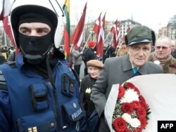 Тем не менее, одно время День легиона официально отмечался в стране. Затем праздник отменили, однако 16 марта - по-прежнему не простой день, во всяком случае, для латвийской полиции. В этом году проведение каких-либо мероприятий, независимо от лозунгов, мэрия не разрешила. Однако в центре Риги ограничено движение, памятник Свободы оцеплен, улицы города патрулируются усиленными нарядами полиции. Члены национал-радикальной молодежной организации "Все - Латвии" раздают бывшим легионерам цветы и приветствуют их государственными флагами. Ее председатель Райгис Дзинтерс считает сохранение памяти о легионе своим долгом: