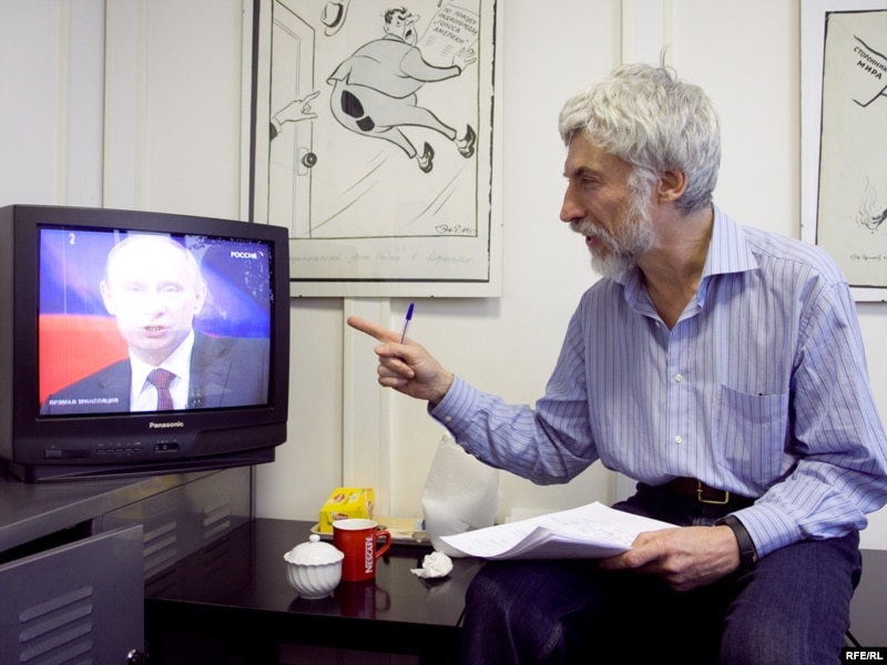 Александр Минкин: А люди могут слушать Радио Свобода и при этом смотреть на экран. Звук там приглушить. Ведь понятно заранее, что он скажет - пенсии будем повышать, инфляцию будем тормозить, производство будем налаживать, с кризисом будем бороться. Билет на елку, наверное, подарит кому-нибудь. Квартиру, говорят, уже подарил.