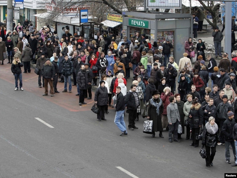 Люди ждут наземный транспорт у метро "Парк Культуры"