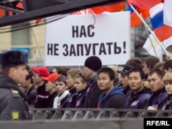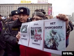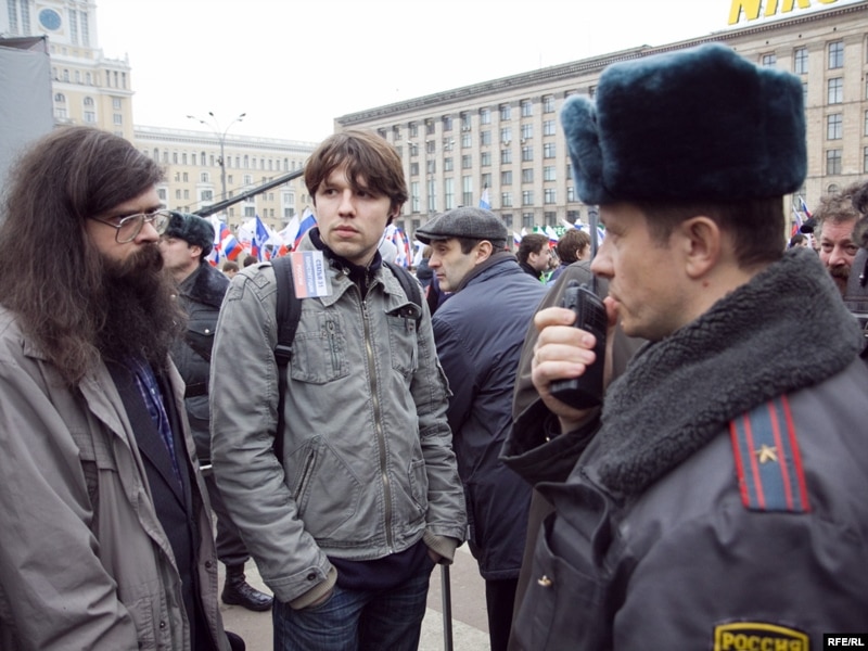 Одновременно на площади проходила акция "Молодежь против террора", организованная прокремлевскими молодежными движениями. Ее власти разрешили.