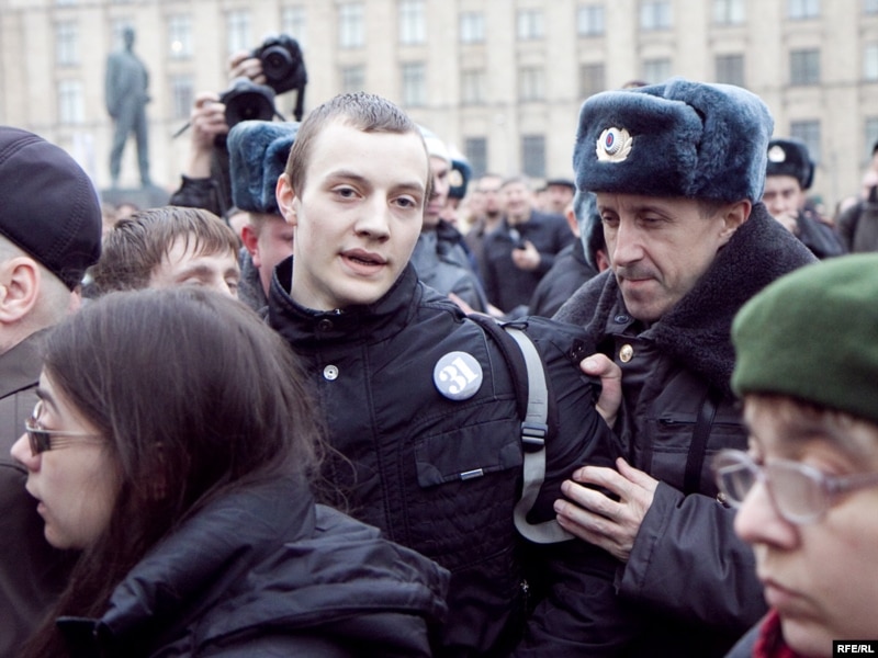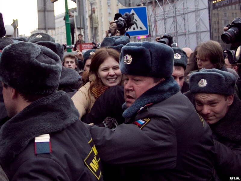 Задержание участников акции за свободу собраний на Триумфальной площади в Москве