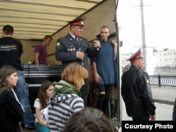Ну да, иногда зрители выражают свои домыслы относительно возможной нашей сексуальной ориентации, иногда дают какую-то качественную характеристику музыке. Но это все точечные выкрики из зала, обычно всем нравится. Мне кажется, особенность этого концерта, скорее, не в милиции, а в публике, которая, как мне показалось, была совершенно не готова к музыке, а больше к текстам, словесным экзерсисам, нежели к музыкальным. И мы со своей музыкой были там не совсем к месту. Я думаю, что задержали нас за мат, это достаточно разумное объяснение, к которому, в принципе, не придраться. Придраться можно к тому, что нас не предупредили, что нас могут за это задержать. Но это уже дело организаторов. Я спрашивал организаторов, задержат ли нас сегодня, и нам говорили, что не знают. Как я понял, поучаствовав в этой истории, что для определенного количества людей подобные трипы с ментовками и прочими историями, это такая их работа. Как мне показалось, это мало имеет отношения к какой-то жесткой социальной позиции, скорее, это такой стандартный у них набор движения по плану: повыступали, немножко чего-то поскандировали, устроили дебош, провокацию, получили, отсняли все в милиции, посидели с правозащитниками - все отлично. И потом, на следующий день, в интернете все читается и - зашибись. Плохо, что нашему мату уделяется особое внимание. Я не люблю смотреть в блогах, что про нас пишут, но в связи с последними событиями стал смотреть, и увидел, как перевирается информация, как она причесывается и делается удобной для того, кто ее, так или иначе, транслирует. Там даже женщина, которая нас везла в машине (потом я нашел с ней интервью), рассказала, как мы себя ужасно ведем в этой машине, что мы не просто ругаемся матом, а им разговариваем, и что я репетировал свою речь, в которой, кроме слов “Путин” и “Россия”, все остальные слова - матерные. Я немного удивился, поскольку это неправда. Нас забирали из аэропорта, мы были после такого угара и немного помятые. А репетировал я речь, чтобы рассказать, как в Белоруссии люди, находящиеся под действительным давлением, понимают, что, в принципе, не стоит рыпаться унд объединяться, потому что в любом случае будешь сидеть, а твоя внутренняя позиция и тот образ жизни, который ты ведешь, будет до той поры проходить, пока с внешней стороны будут хмуриться. И вот там есть те, кто боятся, что будут хмуриться и грозить, а есть те, кто не обращает на это внимание. А если ты объединяешься с кем-то, то ты сидишь, то ты политзэк, так или иначе. Я что-то такое хотел сказать, там не было, как вы слышите сейчас, слов “Россия” и “Путин”. Но просто я удивился, что после мероприятия такой резонанс. Я понял, что все это сделано ради этого резонанса, что наши ребятки там хорошо посветили своими личиками в милиции, как будто бы мы попали на конвейер - райд, потом милиция, потом фотографии, потом в ЖЖ растиражировали. Я нашел еще в интернете какие-то моменты, где вырезаны песни, наши выступления, там три ролика, и все эти три ролика - с матом. То есть на этом акцентируется внимание, они еще стали распространять в социальную сеть. В общем, нас повернули тем боком, которым удобно. В принципе - плевать, но в любом случае я против использования. Здесь очень сложно сказать, использование это такое непосредственное или нет.