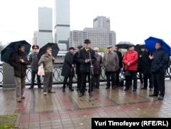 Для митинга ученым выделили место полностью защищенное от случайных прохожих - середину тупиковой набережной Тараса Шевченко. Чтобы добраться до места митинга нужно было пройти более километра от моста Багратион.