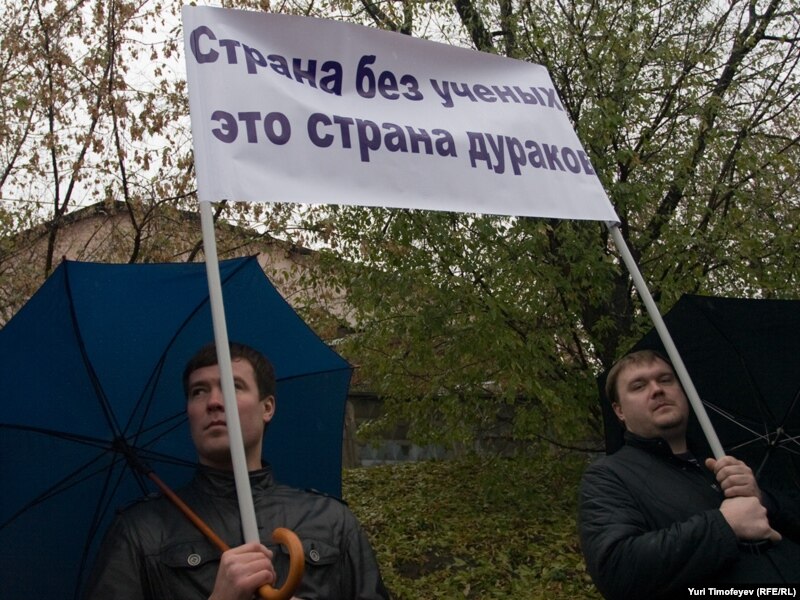 Проливной дождь не помешал сотрудникам Российской академии наук из двух десятков регионов собраться в Москве на митинг с требованием увеличить финансирование науки. Правда, акцию им разрешили провести в месте глухом, практически безлюдном – на Нижней набережной Тараса Шевченко.