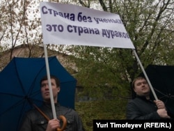 – Я сотрудник Институт физики Земли РАН, ведущий инженер, работаю в институте около 50 лет. Зарплата моя – 13 тысяч 200 рублей, – сообщила корреспонденту Радио Свобода одна из участниц митинга.