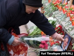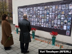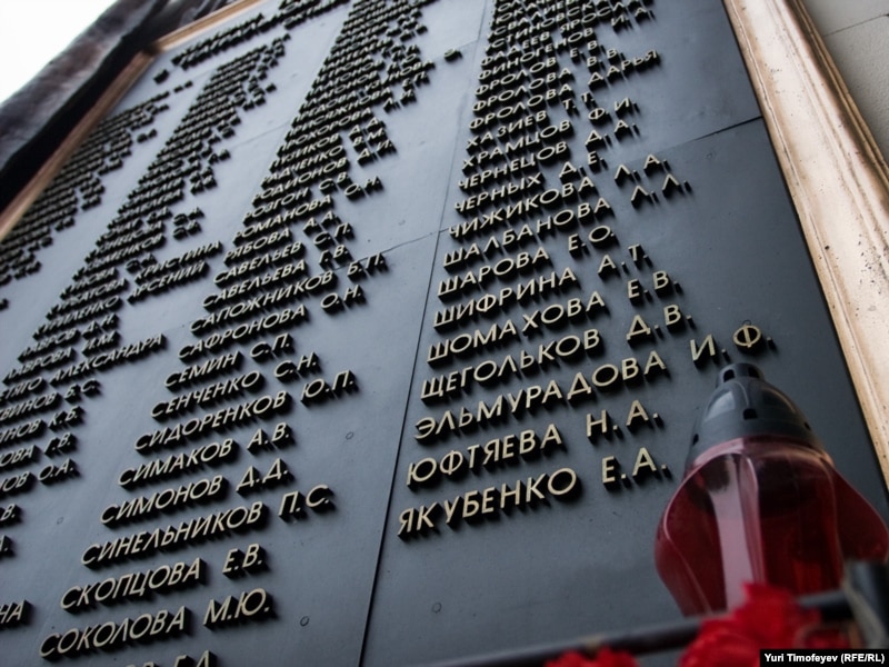 У мемориальной плиты с именами жертв теракта на Дубровке
