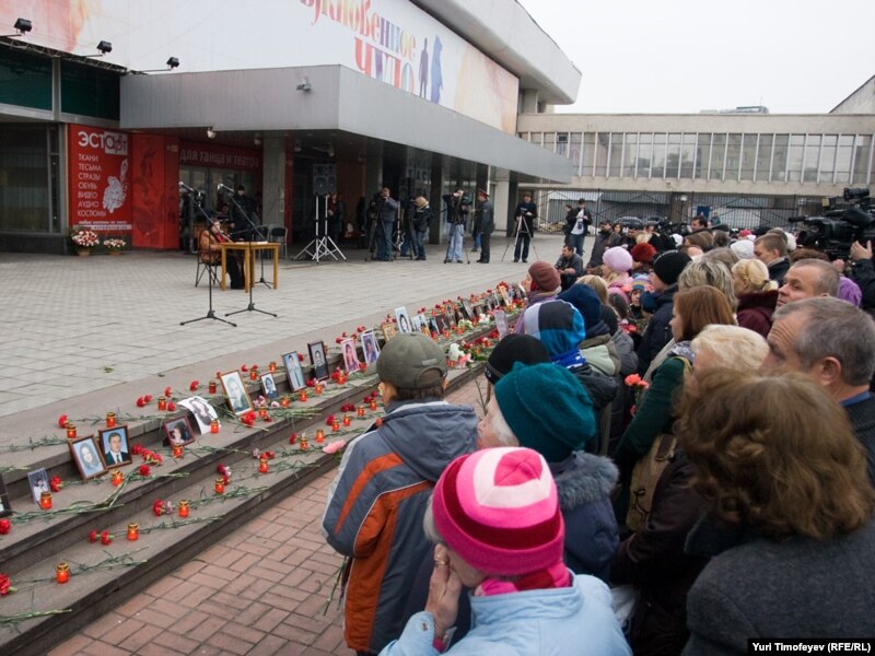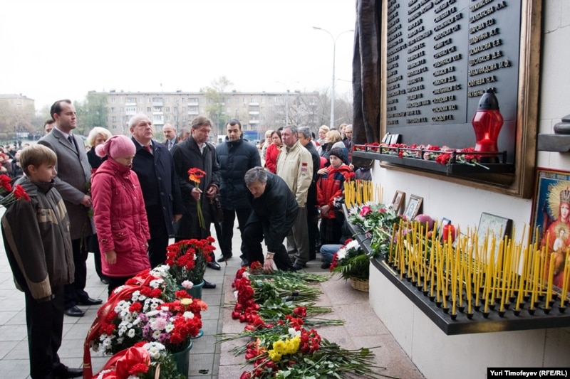 Около 300 человек собрались 26 октября 2010 года у Театрального центра на Дубровке. Восемь лет назад в ходе спецоперации по освобождению заложников – зрителей, артистов и технического персонала мюзикла "Норд Ост" погибли 130 человек.