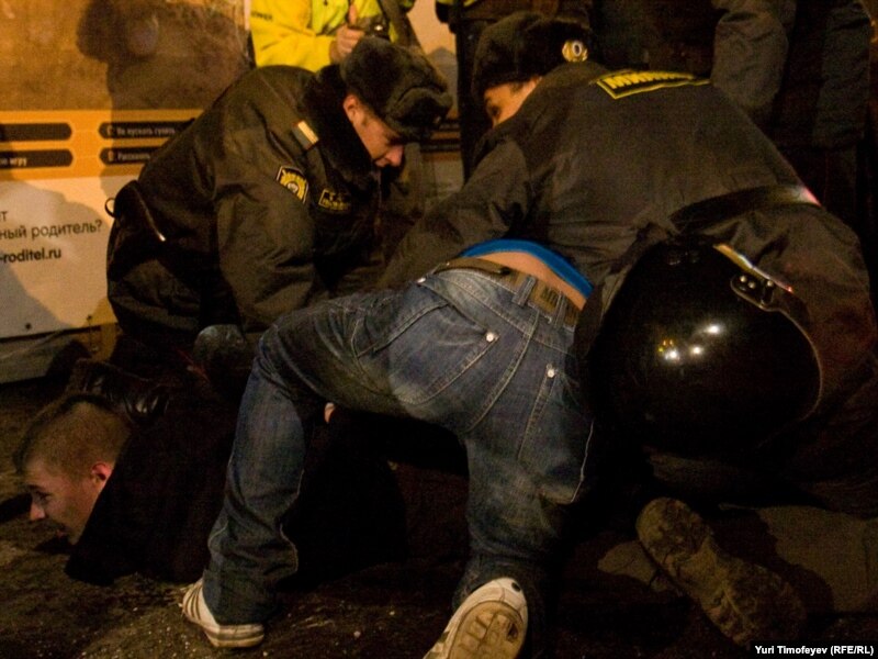 Остальных (примерно 100 человек) милиция и солдаты внутренних войск настойчиво пытались оттеснить от станции метро и концертного зала и через живой коридор из сотрудников правоохранительных органов направить к гостинице "Пекин", где проходила согласованная акция. Молодые люди сопротивлялись, не желая проходить через рамки металлоискателей, и скандировали: "В загон не пойдем!"