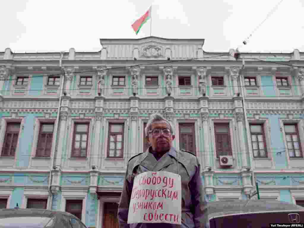 В Москве у посольства Белоруссии прошла серия одиночных пикетов в поддержку политзаключенных