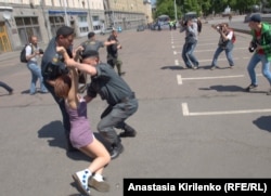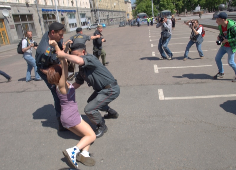Активисты гей-движения 28 мая попытались провести две акции протеста в Москве: на Манежной площади и напротив мэрии. Задержаны несколько десятков человек, в том числе Даниэль Чой (США) и Луи-Жорж Тэн (Франция). Задержана также корреспондент "Новой газеты" Елена Костюченко. Позже ее доставили в больницу с подозрением на сотрясение мозга: по словам Елены Костюченко, во время акции православные активисты ударили ее по голове.