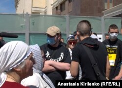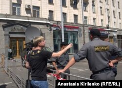 Скандировавших "Москва без пи..." пытались успокоить хрупкие девушки. Они кричали "давайте их зацелуем"