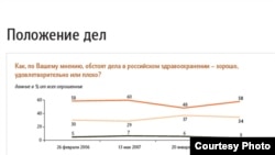 - Наверное, о реформах, которые в последнее время проводятся и об оценке результатов, программ, мероприятий, конкретного качества медицинской помощи, которую граждане получают на местах. Сюда входят разные аспекты, по которым люди могут судить: и качество лечения, и лекарственная обеспеченность, и какие-то новшества. Видимо, все вместе позволяет говорить о неутешительных, к сожалению, пока результатах.