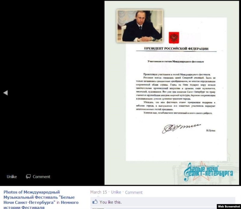 - Фестиваль "Белые ночи Санкт-Петербурга" указывал на своем сайте, что он официально зарегистрирован за рубежом.