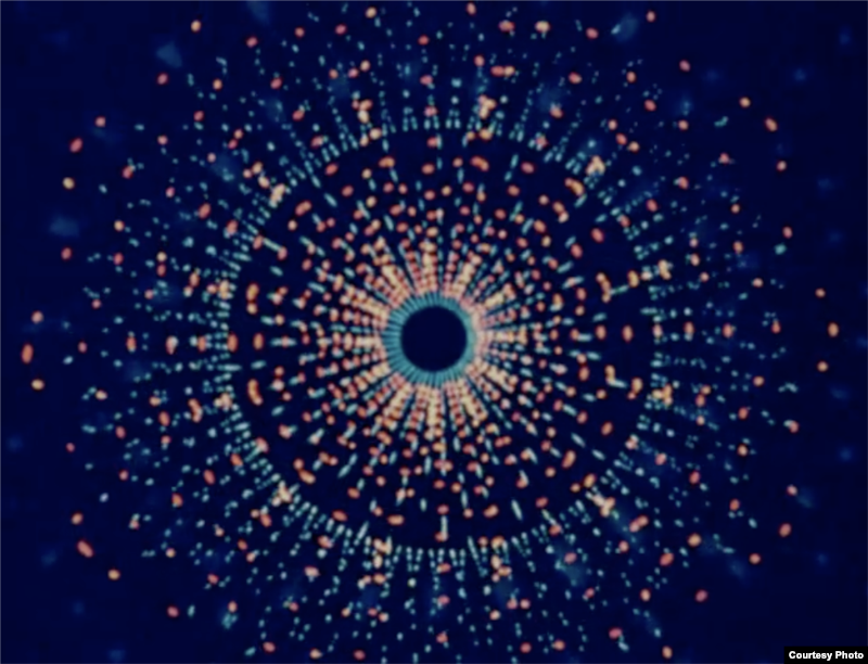Андрей Хренов: Да, он работал с 1957 по 1959 год с композитором Джекобсом, они создавали ''Вихревые концерты'', где использовались самые разные средства – это и движущиеся мониторы, это и компьютерная анимация, все формы, не только экспериментальные фильмы. И здесь я хочу провести параллель с кинохудожниками, которые приезжали в Париж и также занимались синестетикой – они пытались сломать рамки живописного видения мира и приблизиться к миру движущемуся. То есть кино было неким новым для них восприятием. Здесь мы можем говорить о синестезии, о восприятии мира с помощью самых различных средств. И это было ключевым для американского авангарда 60-х.