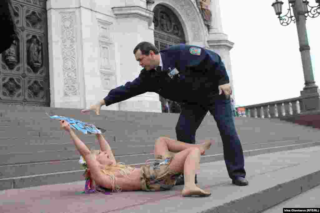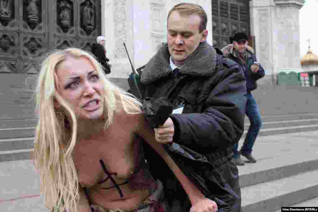 Охранники вызывали полицию и не давали девушкам прорваться к храму