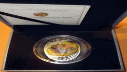 Виталий Диксон: Вы знаете, особого счастья у меня нет. Я не коллекционер, во-первых, просто редкость какая-то. Я напомню вам, вы же историк, с чего начиналось музейное дело в России, в Петербурге – с кунсткамеры петровской, а сама кунсткамера начиналась, одни из первых экспонатов были банки с заспиртованными уродцами. Счастья нет, но есть то, что я могу точно говорить, ссылаться на что-то, на то, что – вот номинал, данные, обозначенные в сертификате: номинал – один новозеландский доллар, металл – серебро 925 пробы, масса – 28,28 граммов, размер - 30 на 50 миллиметров, овал, тираж – до двух тысяч штук. Реальная стоимость – 3 200 рублей. Рядовой гражданин не располагает такими возможностями, взять, пойти и купить – это дороговато.