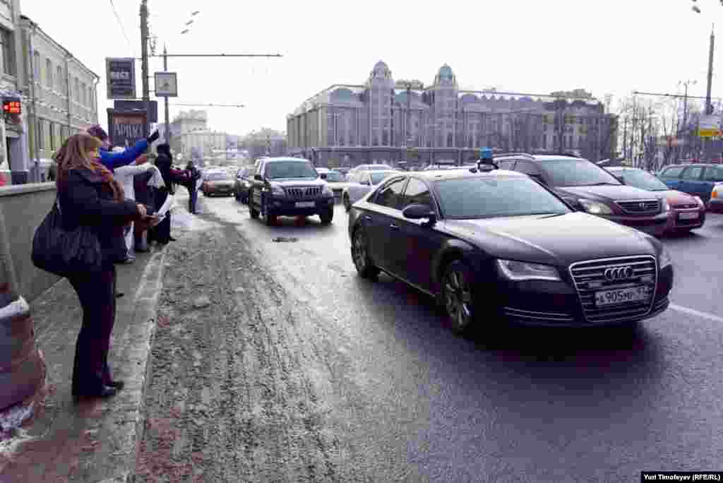 Пешеходы приветствуют участников автопробега «Белые улицы» в Москве