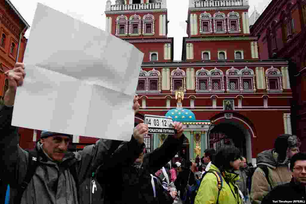 Акция-прогулка с белыми лентами у Красной площади в Москве