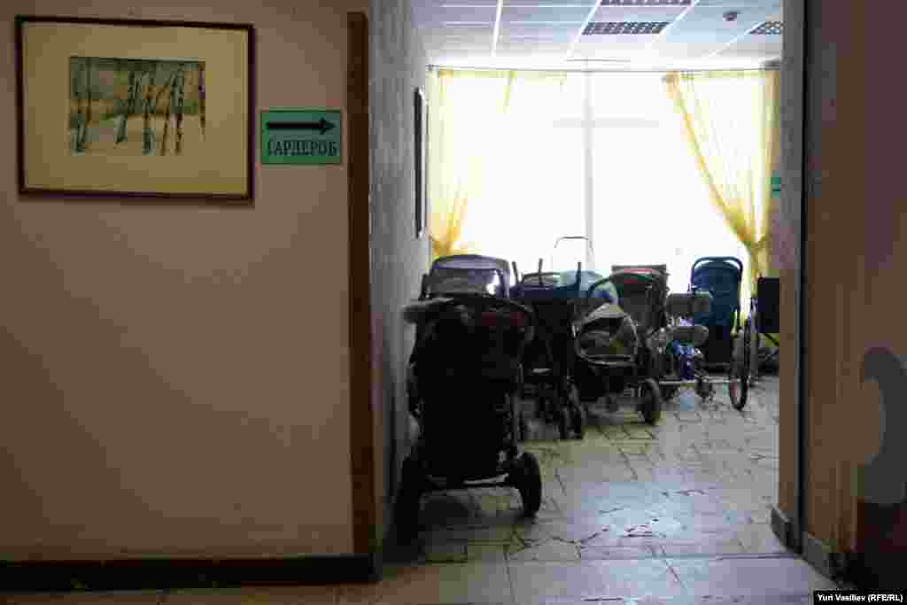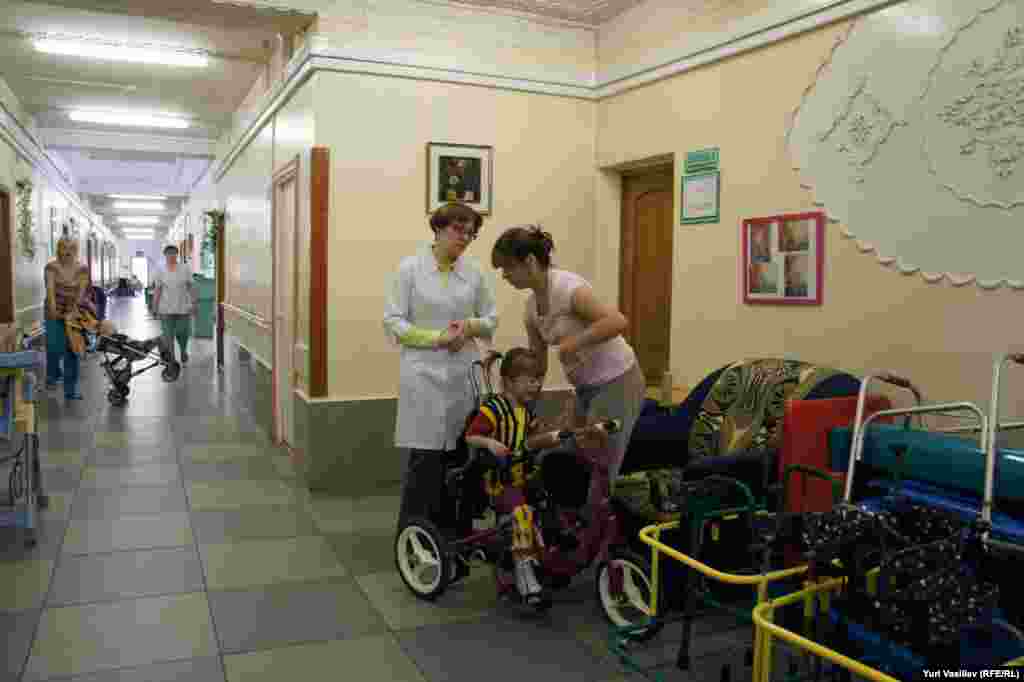 В центре "Детство" даже в коридорах можно встретить импровизированные тренажеры для маленьких пациентов.