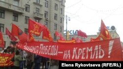 12:19 Колонна людей с белыми ленточками присоединилась к разрешенному шествию коммунистов от Пушкинской площади до Лубянки. Они встали за флагами "Левого фронта". Протестующие скандировали "Позор НТВ". У некоторых коммунистов в основной колонне также есть белые ленты.