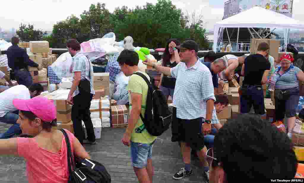 На Воробьевых горах в Москве продолжается сбор помощи пострадавшим от наводнения на Кубани.