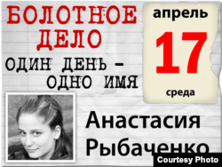 17 апреля – день солидарности с Анастасией Рыбаченко. Ей 21 год, была вынуждена бежать из России, после того как была задержана на "Марше миллионов" и осуждена на пять суток административного ареста. 11 июля 2012 года в ее квартире прошел обыск, а 3 октября 2012 года стало известно, что с 11 сентября она находится в федеральном розыске по обвинению в участии "массовых беспорядках". Следствие заявляет о планах объявить 21-летнюю девушку в международный розыск.