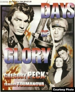 Возможно, лучшей картиной этой просоветской серии стал фильм 1944 года "Дни славы". Сценарий, написанный продюсером Кейси Робинсоном, отличался искусственностью сюжета. Но поставил картину Жак Турнер – автор фильмов ужасов, которые стали классикой жанра. А главное, в нем снялись в главных ролях Грегори Пек и Тамара Туманова. Пек к тому времени уже снискал известность в бродвейских театральных постановках. Туманова была примадонной труппы "Русский балет Монте-Карло". Для обоих "Дни славы" стали дебютом в кино. Трейлер называет картину "изумительной историей мужчины, который познает идеализм любви, и женщины, которая познает реализм войны".