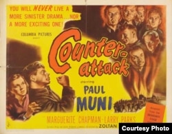 В апреле 1945-го на экранах появился фильм "Контратака" с популярнейшим Полом Муни в главной роли. Он играет парашютиста-диверсанта Алексея Кулькова, заброшенного в немецкий тыл. Кульков оказывается в одном здании с шестерыми немецкими солдатами и одним офицером, которых он взял в заложники, однако немецкая артиллерия разрушает здание и парашютист оказывается погребен под обломками в одном подвале с немцами. Вместе с Кульковым – местная подпольщица Лиза Еленко (Маргерит Чапман). Вдобавок ко всему гаснет единственная лампа, и в подвале воцаряется кромешная тьма. Кульков начинает хитроумную игру со своими пленниками, стараясь не только выжить, но и выведать важную информацию. Информацию он выведывает, но тут сверху раздаются удары кирки и немецкая речь. Неужели все усилия оказались напрасны и теперь пленник – Кульков? На самом деле Кулькова и Еленко освобождают из заточения советские войска, которым он и сообщает свои разведданные, а по-немецки говорили пленные, которым приказали разобрать завал.