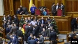 Депутаты оппозиционных фракций сегодня вновь заблокировали трибуну Верховной рады Украины, чтобы помешать парламентскому большинству принять предложенный правительством проект бюджета на 2014 год.