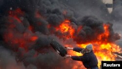 В течение дня в центре Киева в районе улицы Грушевского продолжалось противостояние спецназа и антиправительственных манифестантов.