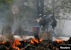 Украинские силы занимают блокпост пророссийских вооруженных отрядов у Славянска