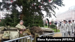 Инсценировка на этом параде присутствует тоже. Очень милое сочетание главной Рождественской елки города с этой старой военной техникой.