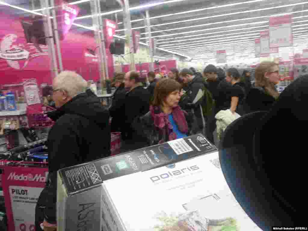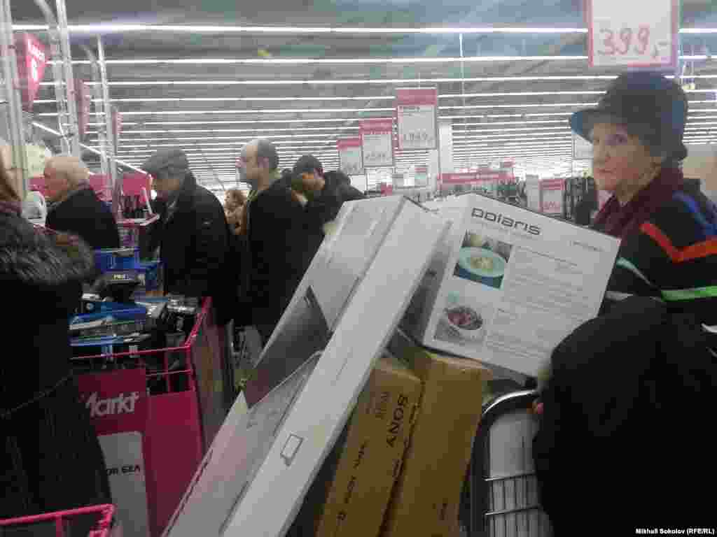 В России наблюдается ажиотажный спрос на отдельные виды товаров, в первую очередь, на бытовую технику и электронику. Отчасти такие рекордные продажи связаны с наступающим праздником, но основная причина – в желании людей вложить свои обесценивающиеся рубли перед неминуемым повышением цен. В результате этой массовой скупки товаров в некоторых магазинах Москвы, например, уже заметно их полное или частичное отсутствие. Фотографии сделаны смартфоном