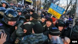 В Киеве митингующие пытались прорваться в здание Верховной Рады