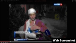 Для подтверждения показывают неких людей. Один из них в титрах числится как "Андрей Спивак. И.О. генпрокурора ДНР" (еще недавно в сообщениях государственных российских СМИ – замгенпрокурора ДНР). Он поясняет, что повреждения, которые получил автобус, "были причинены вследствие подрыва противопехотной мины".