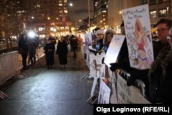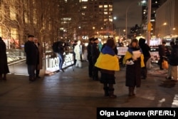 В четверг, 29 января, представители украинской диаспоры, музыканты и активисты ЛГБТ-сообщества развернули плакаты у здания Метрополитен-оперы в Нью-Йорке.