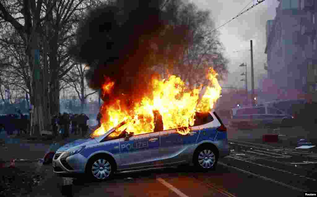 Во время протестов было сожжено не менее 7 полицейских машин