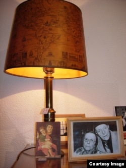 Все это вещи из кабинета Бродского в городе Саут-Хедли, штат Массачусетс, где он преподавал с начала 1980-х в колледже Маунт-Холлиок. Все это: и стол, и секретер, и настольную лампу с абажуром в виде карты мира, и кресло под ярким покрывалом, и постеры, привезенные поэтом, увлекавшимся архитектурой, из его итальянских путешествий, и библиотеку, и собрание открыток, посылавшихся родителям, оставшимся запертыми в СССР, из разных уголков мира, – все эти вещи музею Ахматовой передал в 2003 году Фонд наследственного имущества Бродского и вдова поэта Мария Соццани-Бродская.