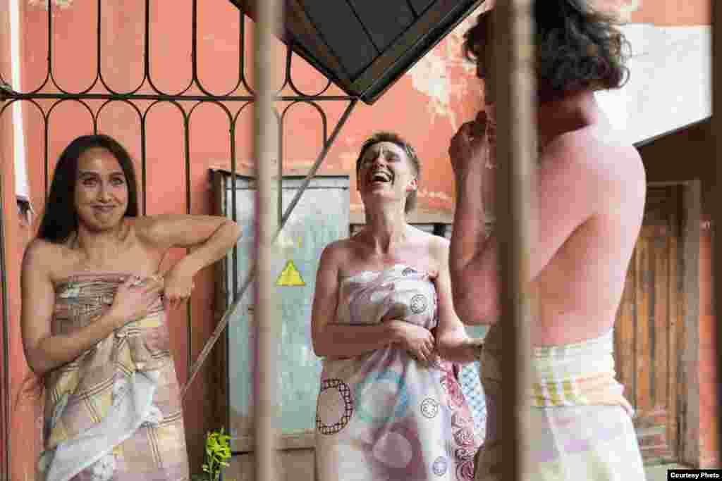 Фотосессия актеров Псковского академического театра драмы им. А.С.Пушкина Анны Шуваевой, Жени Львовой и Дениса Золотарёва в поддержку спектакля режиссера Варвары Фаэр "Банщик". Руководство театра фактически отказалось от постановки спектакля после жалобы части коллектива и администрации министру культуры России Владимиру Мединскому: пьеса якобы очерняет современную российскую действительность. Теперь режиссер и несколько занятых в спектакле актеров проводят кампанию по сбору средств на постановку "Банщика".