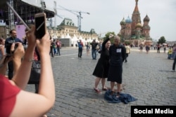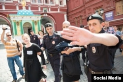 В четверг, 25 июня, Екатерина Ненашева расстелила на Красной площади плащ, встала на него, после чего ей обрили голову и сорвали с нее одежду – тюремную робу с номером. Под робой оказалось черное платье с таким же номером. "Главная идея – сказать, что так или иначе мы все заключенные, неважно где и как", – объясняла Ненашева смысл своей длившейся месяц акции в прежнем интервью Радио Свобода.