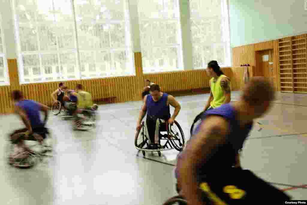 (баскетбол на колясках): «Да времени немного свободного - 5-6 часов поработаю, я камни вставляю дома в бижутерию, потом тренировка 3 часа, и еще в реабилитационном центре детей тренирую. Скучно не бывает».