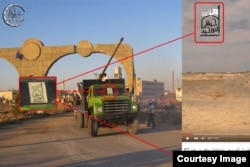 По кадрам видеозаписей авторы расследования смогли подтвердить, что Телль-Биса на момент удара находилась именно под контролем группировки "Джейш-аль-Тавхид" – об этом свидетельствует, в частности, эмблема группировки, размещенная на одном из автомобилей на видео: