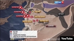 Кадр из выпуска новостей телеканала "Россия" с картой целей российских авиаударов в Сирии: