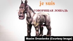 Незадолго до рождения Говорящей лошади в Запорожье появился удивительный памятник: печальное существо, похожее на Владимира Путина, обнимает мертвого снегиря. К скульптуре прилагалась табличка с надписью, стилизованной под старославянскую письменность: "Сей памятник воздвигнут в знак скорби "русскаго мира" о злодейски убиенных жидобандеровцами русскоязычных снегирях". Бизнесмен Максим Дрозденко, по инициативе которого воздвигли этот монумент, объяснял его смысл так: