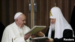 По итогам встречи патриарх и понтифик подписали большую совместную декларацию - вот её полный текст, состоящий из 30 пунктов.