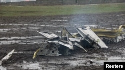 Обломки самолета на взлетно-посадочной полосе: