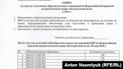 Комитет образования администрации Балаковского района Саратовской области издал приказ, согласно которому около 50 школ района должны в обязательном порядке предоставить 6380 школьников для участия в "народной патриотической акции "Бессмертный полк", которая состоится 9 мая. Приказ и список школ района с указанием числа необходимых школьников опубликованы на сайте движения "Бессмертный полк". Там же приводится комментарий одного из балаковских учителей, который подтверждает принудительный характер участия в акции.