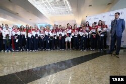Министр спорта России Виталий Мутко и члены олимпийской сборной России