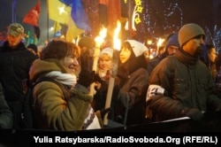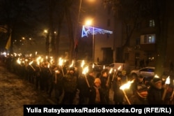 В центре Киева в воскресенье вечером прошло факельное шествие по случаю 108-й годовщины со дня рождения лидера ОУН (Организации украинских националистов).